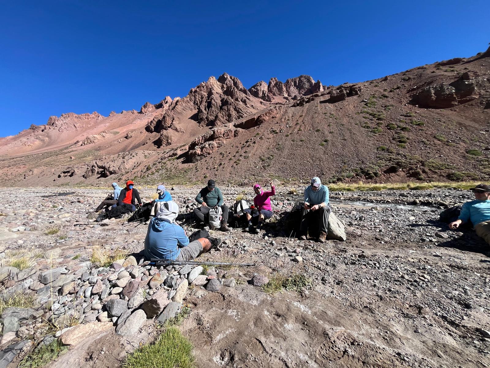 Today, the team arrived at Plaza Argentina Base Camp, marking a major milestone along their climb to the Roof of the Americas. CTSS Guide Mike King shared that the team saw many guanacos and enjoyed a breeze that kept temperatures moderate. The team was welcomed to camp with pizza and drinks, and now they are resting easy in their tents and enjoying a little bit of downtime.